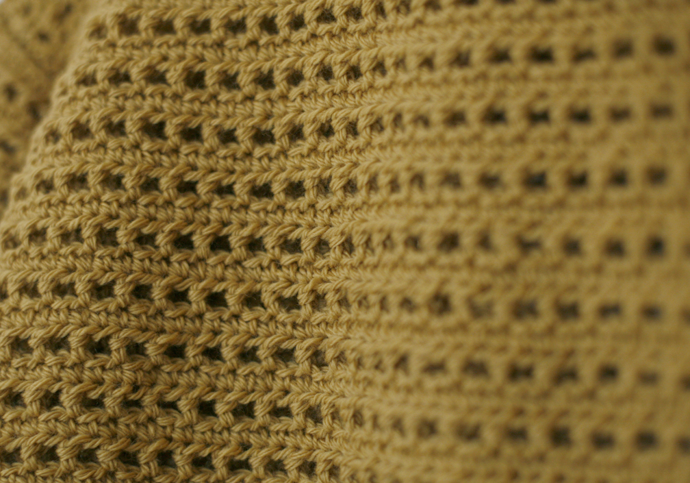 So here we are, two years later (at least), from the original purchase date. I learned a new crochet stitch at the beginning of the summer and I love it! It's a crossed half double crochet, and you cross it by making a second stitch around the post of the previous stitch of the same row. Super cool! I tried a swatch with the Purelife and it was gorgeous.